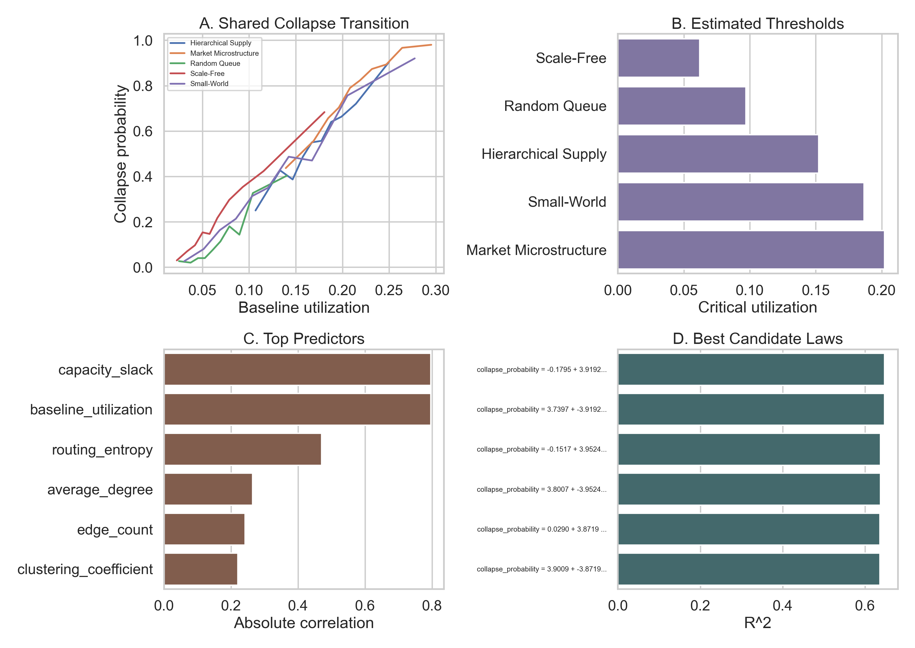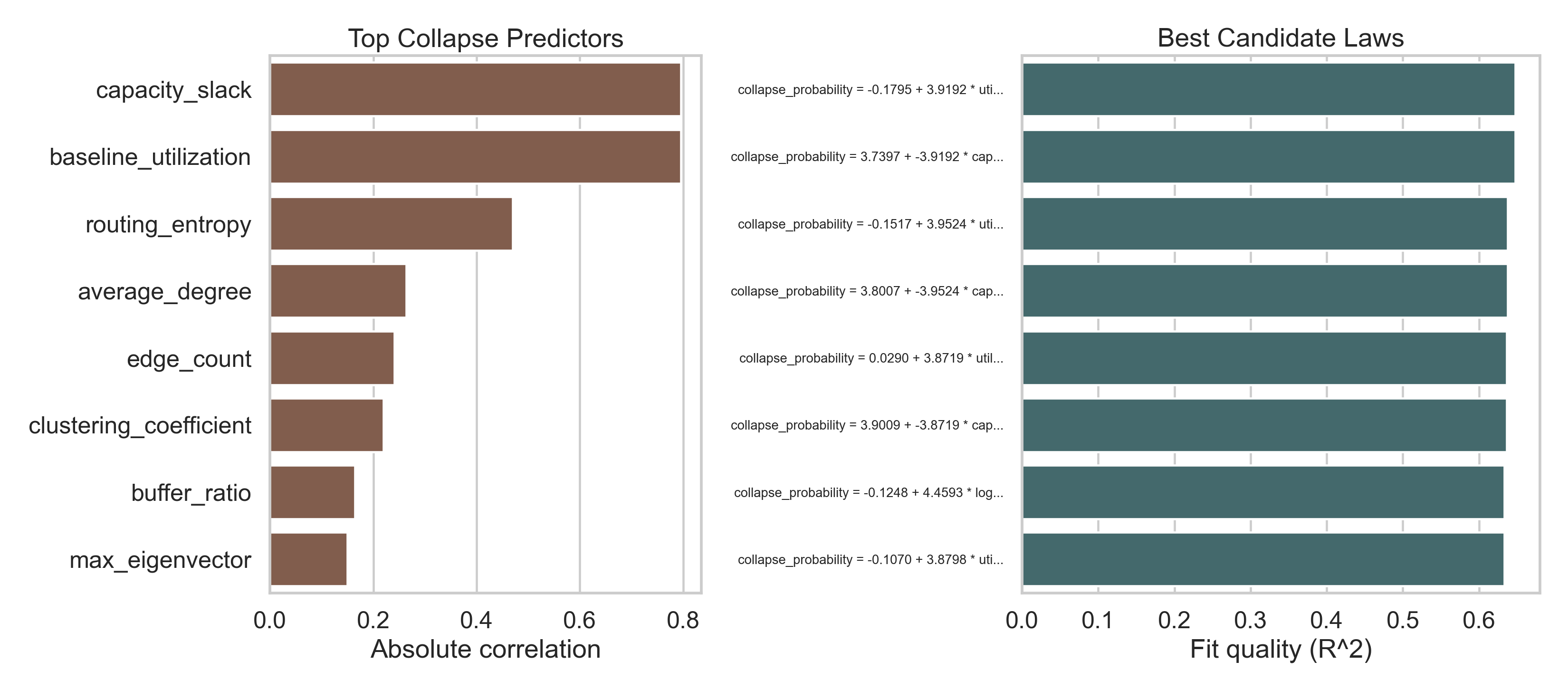 | collapse_probability | utilization | log | 4.459317 | -0.124757 | NaN | 0.633373 | 5000 | collapse_probability = -0.1248 + 4.4593 * log1p(utilization) | 60 | fragility |