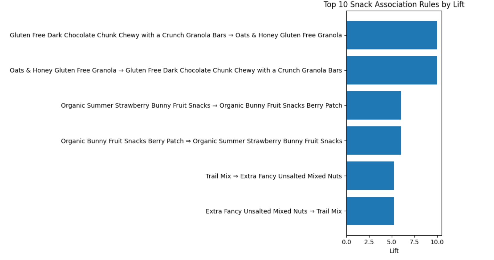 Pairs like granola bars + oat granola aren’t random, and they-re real buying habits.