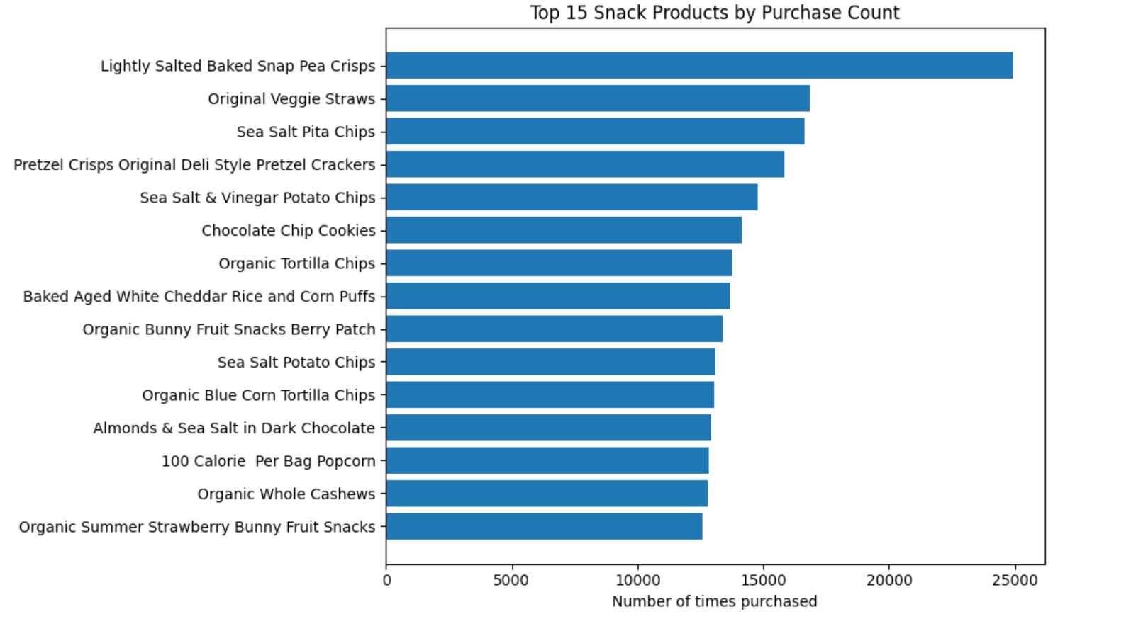 After grouping products by order, I narrowed analysis to the top 50 most purchased snacks. Why?