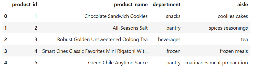 I merged product, aisle, and department files to create a human-readable lookup.